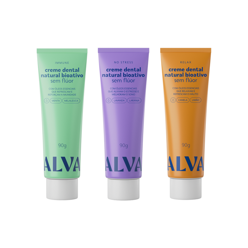 As pastas de dente da Alva trazem experiências de sabor únicas para a sua rotina bucal. A pasta Immune, com menta e melaleuca, combina frescor e proteção, ideal para quem busca uma sensação revigorante e os benefícios naturais da melaleuca. Já a pasta Relax, com limão e canela, oferece uma experiência suave e calmante, perfeita para relaxar e equilibrar a flora bucal. Ambas são opções naturais, sem flúor e com embalagens ecologicamente corretas, tornando esse kit uma escolha completa para cuidados bucais eficazes e sustentáveis.